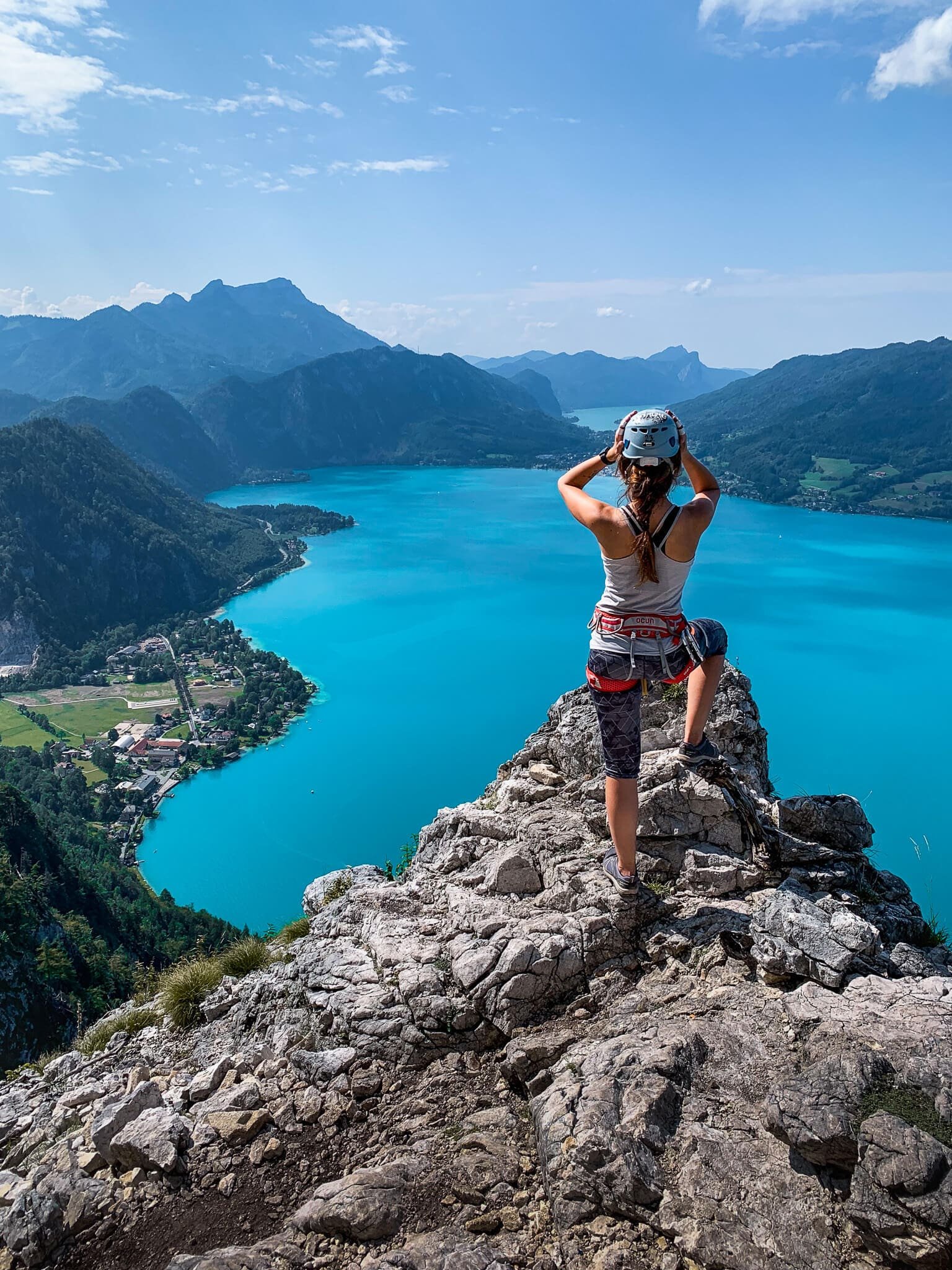 My jezdíme k Attersee i kvůli pěkné ferratě, která na vrcholu odměňuje neskutečnými výhledy. Pokud byste měli zájem ferratu zkusit, dobře odhadněte své síly. Začátek nástupové cesty je docela challenge i pro zkušenější lezce. V roce 2020 se kvůli velkému množství záchranných prací změnila obtížnost na D/E a nástup je v převisu.