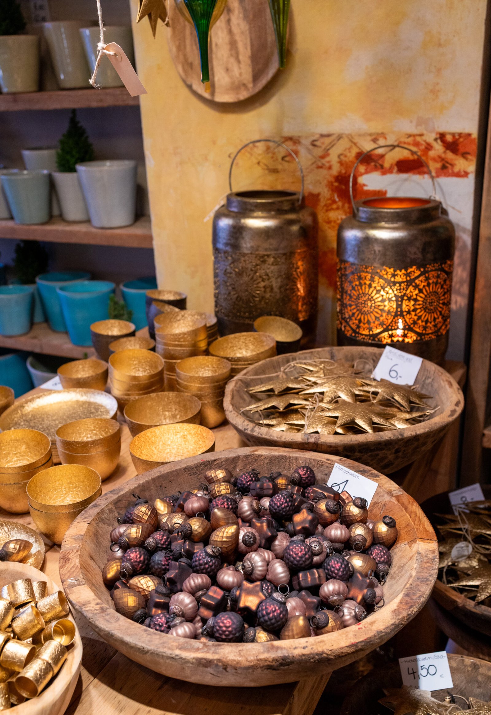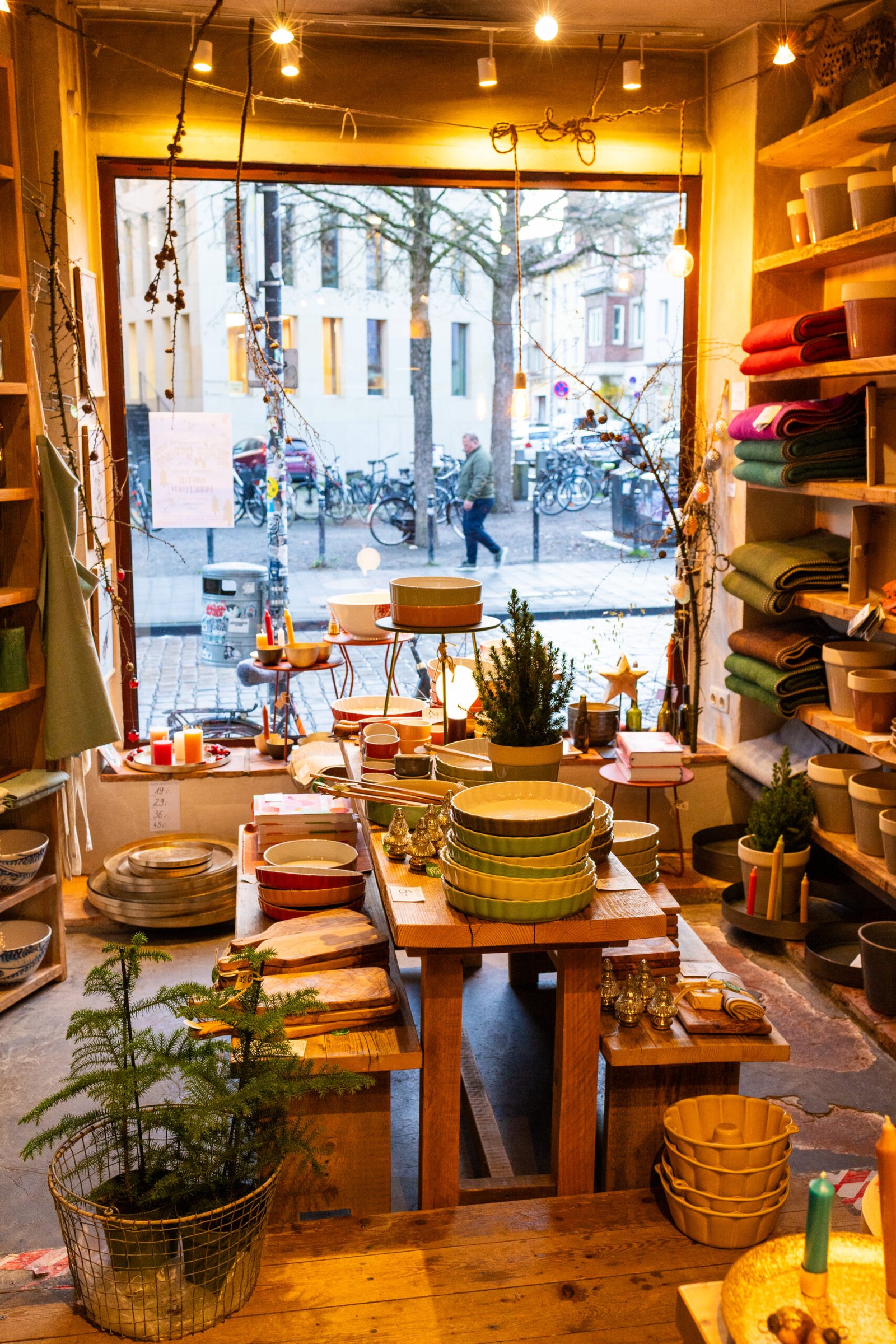 Pro ty nejlepší nápady na vánoční dekorace a dárky nezapomeňte navštívit Glashaus Geschenke, který nabízí moderní a elegantní sortiment. V domě Villeroy & Boch můžete zakoupit krásný jemný tradiční porcelán. Další tradiční vestfálský obchod, Westfalenstoffe, nabízí široký sortiment látek a dekorací. Moderní dekorace ve skandinávském stylu najdete v prodejně Das Schönwerk. Na konci Spiekerhofu, na Rosenstraße, najdete Grün & Form, jedinečný obchod s přírodními (nejen vánočními) dekoracemi.