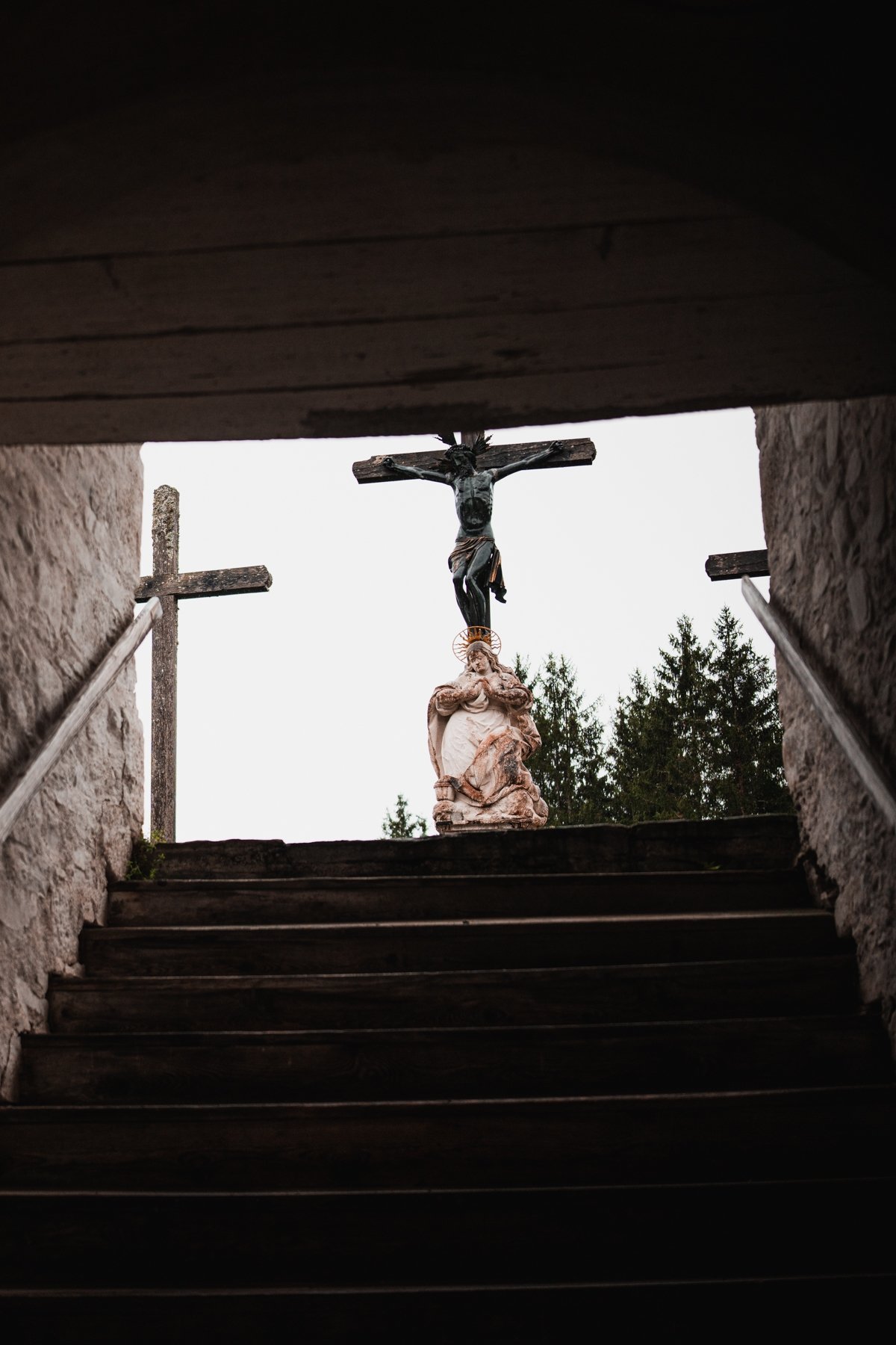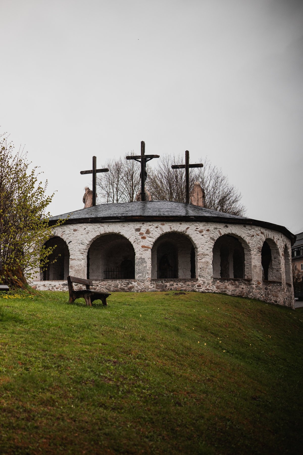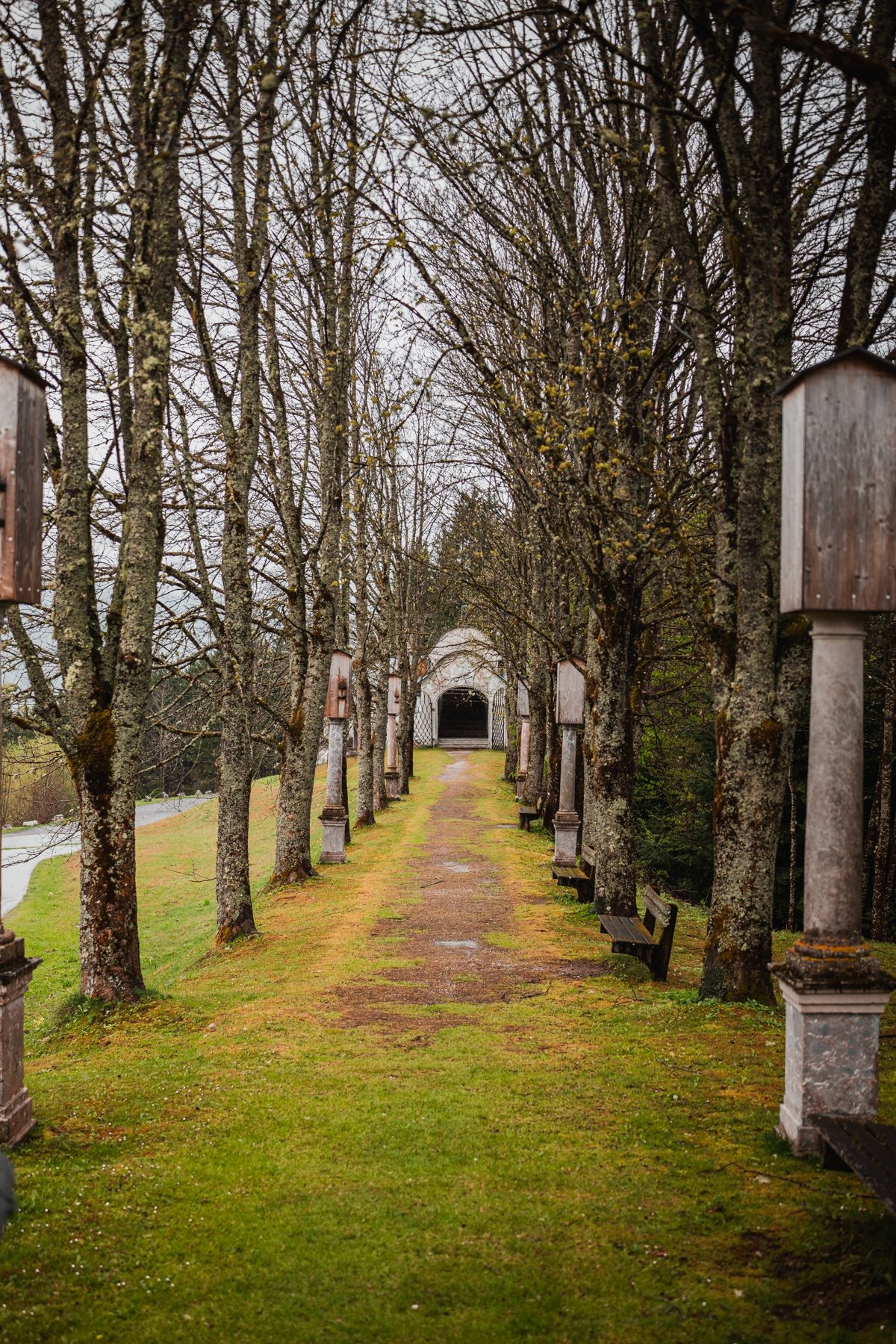 Při procházce k této stavbě nás okamžitě zaujalo, jak je celé místo fotogenické – kombinace bílých fasád kapliček, staré aleje a dramatických alpských vrcholů v pozadí je pro fotografy naprostým rájem. Pokud hledáte klidnější alternativu k rušnějšímu okolí kláštera Admont, je tato krátká procházka alejí přesně pro vás. I když se jedná o samostatné místo, doporučujeme návštěvu spojit s prohlídkou kostela, protože obě lokality od sebe dělí jen pár minut chůze. Je to přesně ten typ místa, kde se člověk na chvíli zastaví, nadechne horského vzduchu a užije si symetrii barokní krajiny.