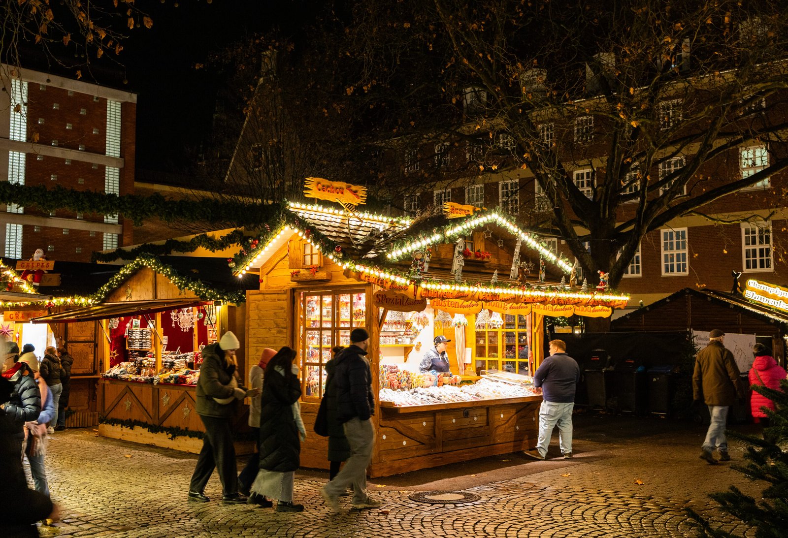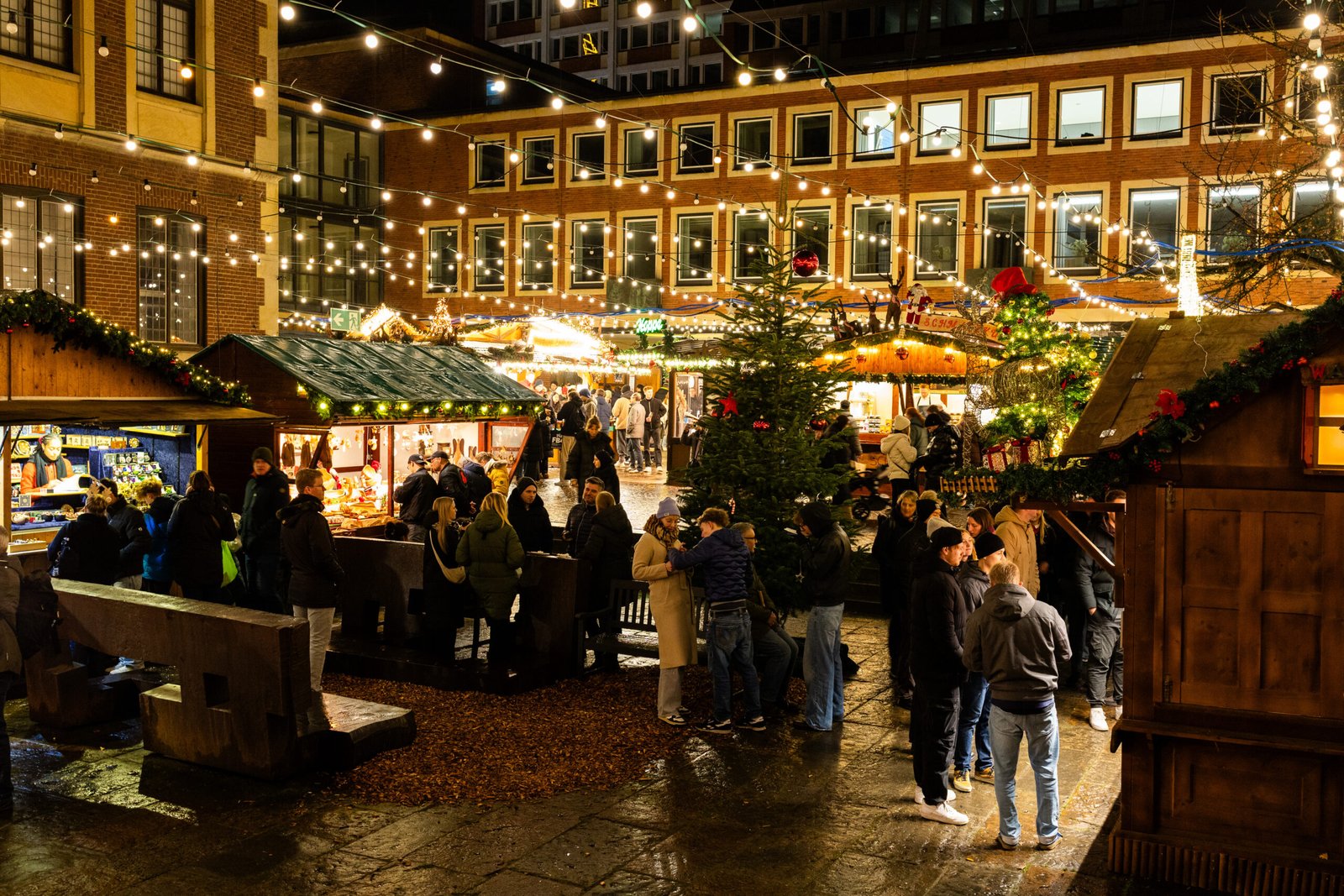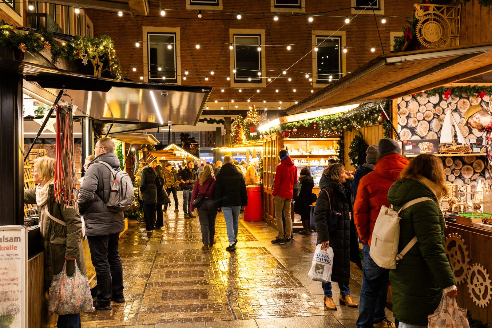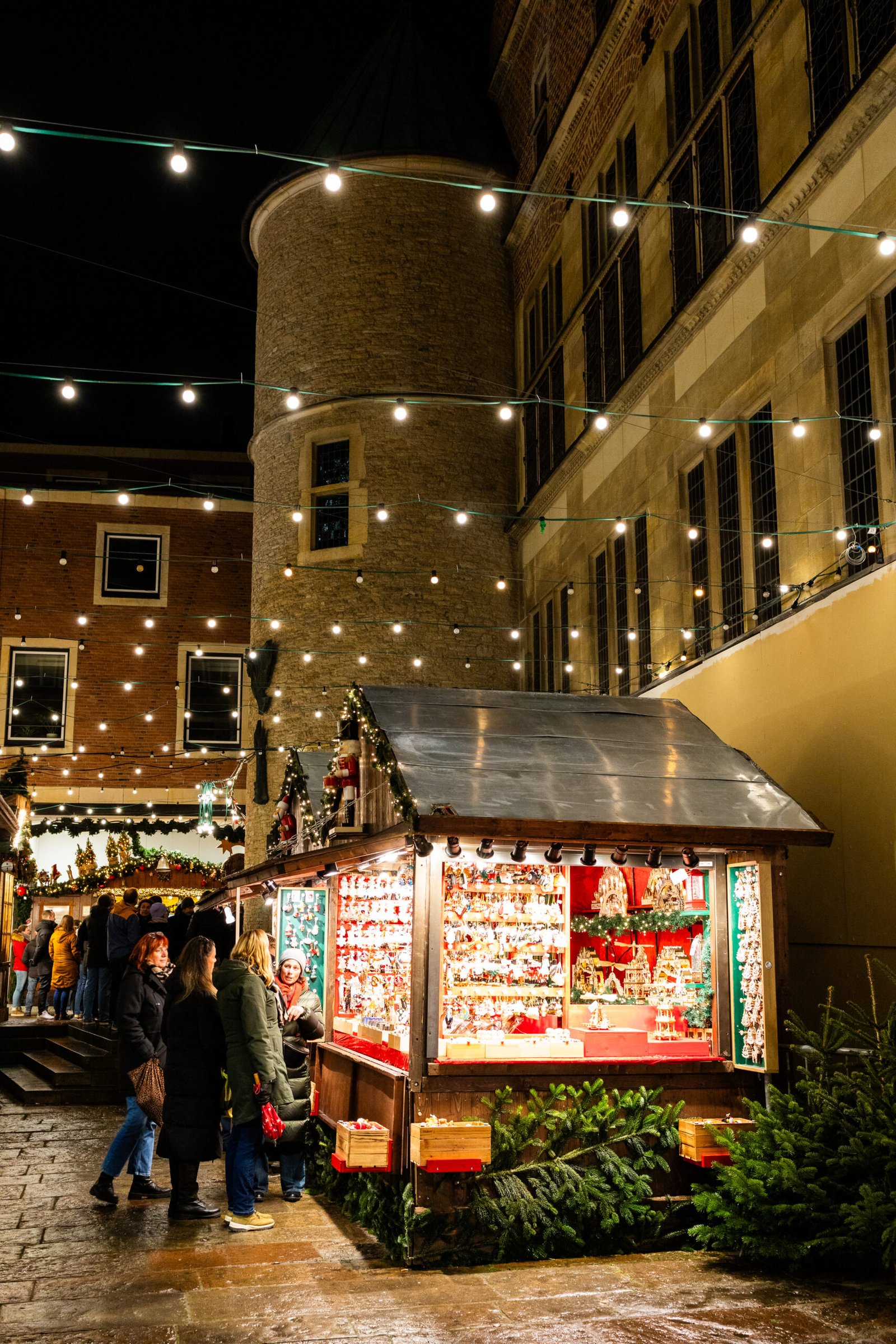 Tento nejstarší a největší vánoční trh v Münsteru se nachází na vnitřním nádvoří radnice, částečně chráněný pod romantickým světelným baldachýnem. Najdete zde vše, čím Vánoce ožívají – od stánků se svařeným vínem, punčem, klobásami, houbami, palačinkami a oplatkami až po půvabné stánky s ručně vyráběnými dárky a krásnými dekoracemi. Děti budou zbožňovat nostalgický kolotoč, zatímco dospělí si mohou vychutnat teplý nápoj a nasát zvláštní záři.