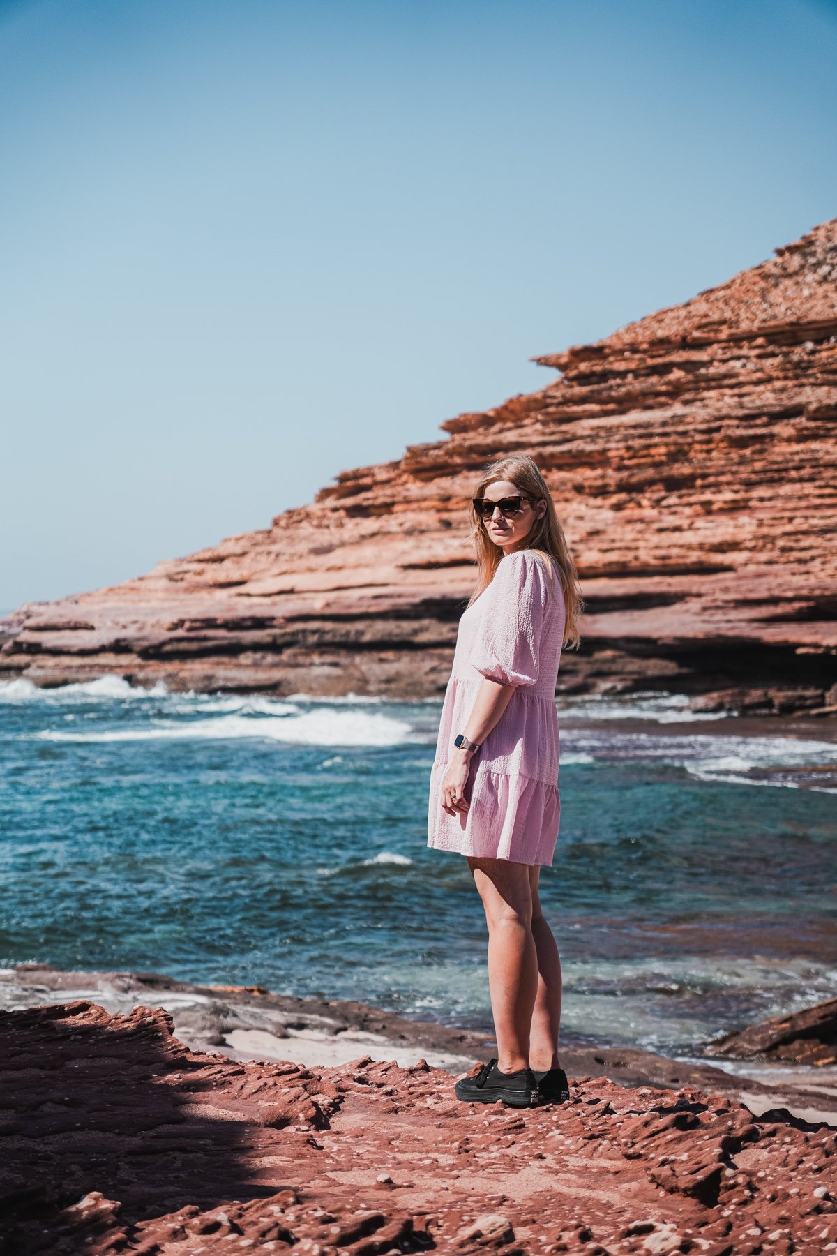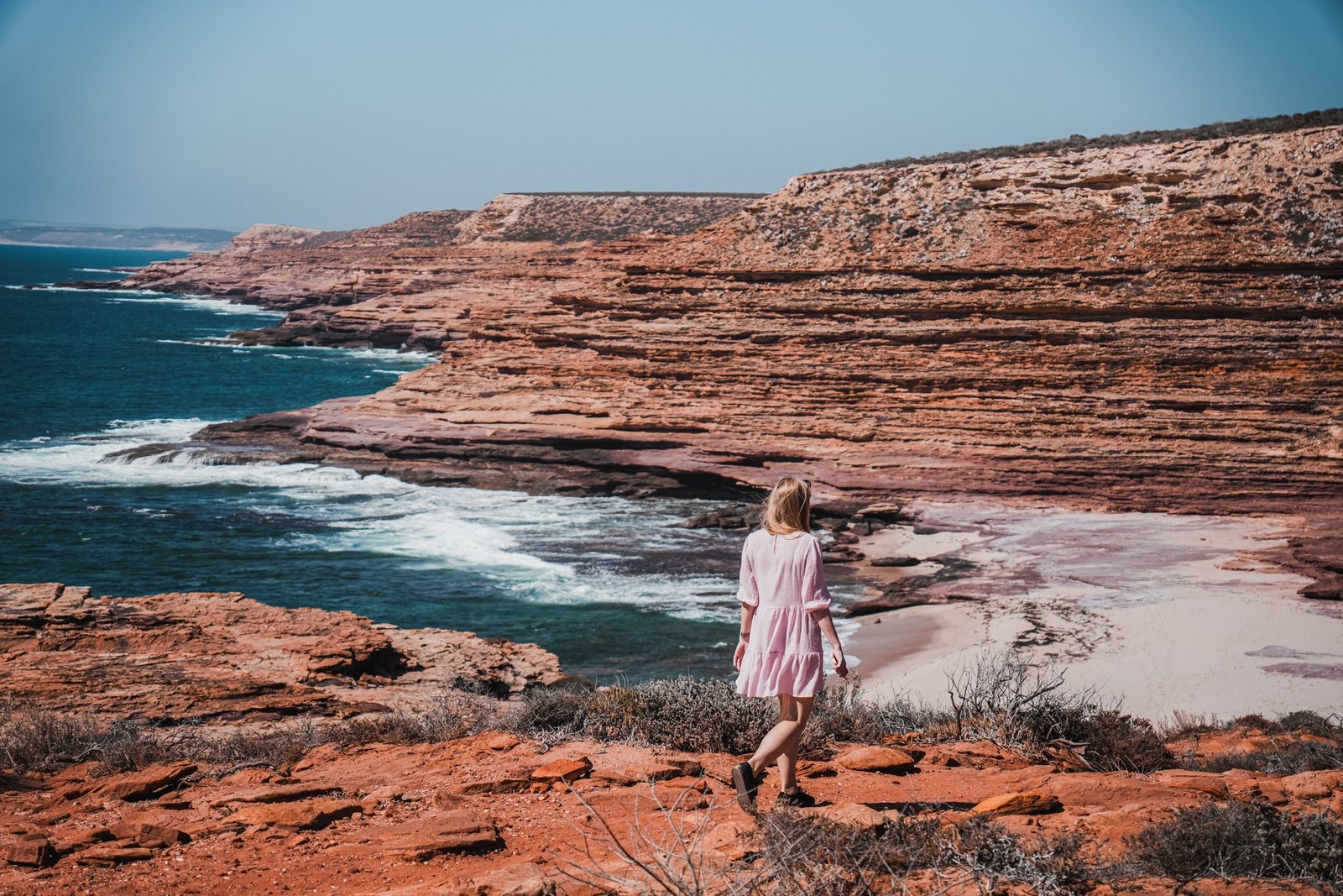 Eagle Gorge is one of those places in Kalbarri National Park that you will instantly fall in love with. From the clifftop lookout, you’ll get a breathtaking view of the dramatic coastline and turquoise Indian Ocean. The gorge itself cuts deep into the coastline and the surrounding rock formations, battered by wind and waves, create a beautiful, wild backdrop. It’s the perfect place to take a photo and take in the incredible power of nature for a while.