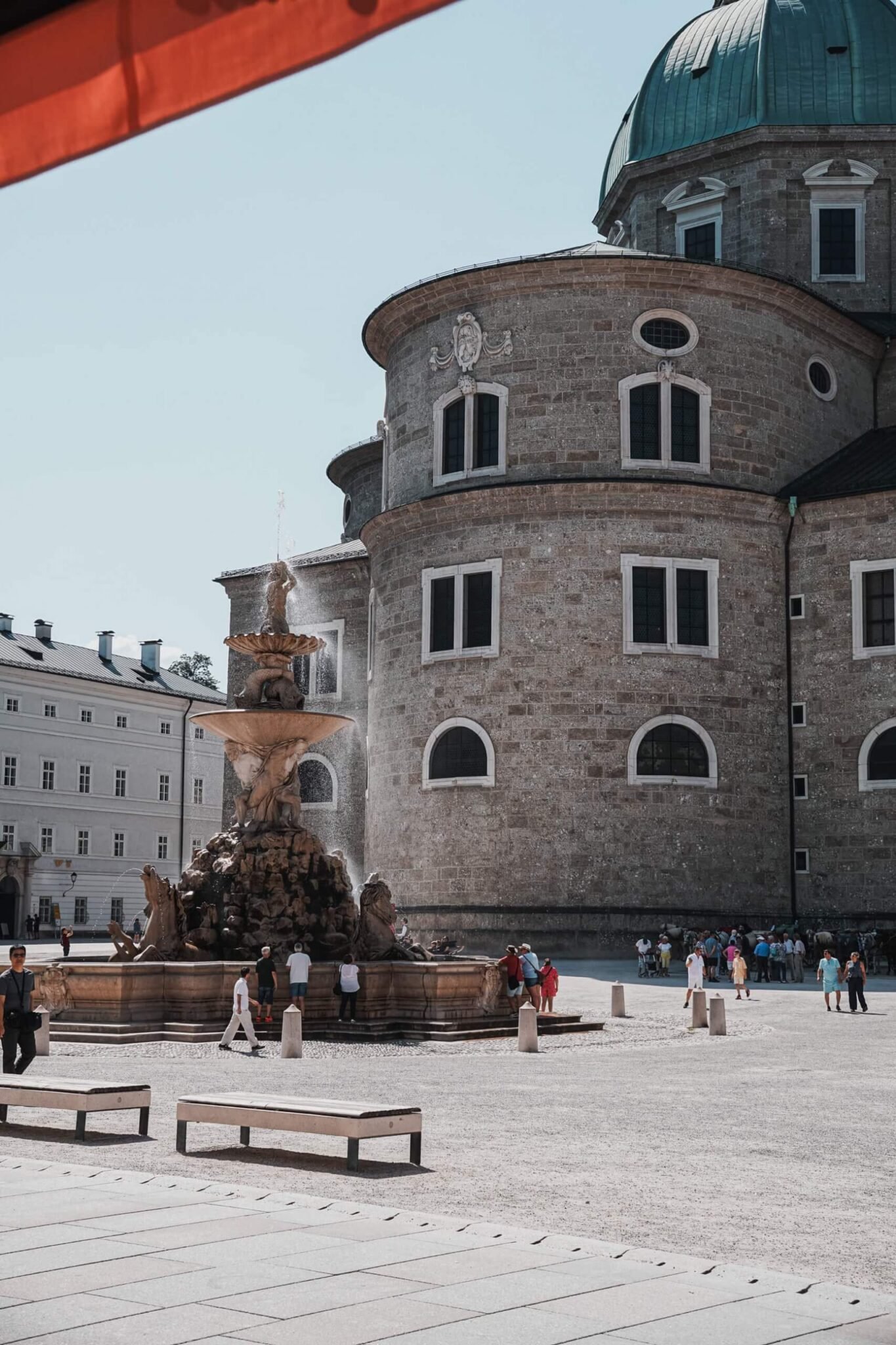 Even though we were only here for a few hours, we managed to walk through the beautiful Mirabellgarten gardens, see the historic centre including Wolfgang Amadeus Mozart’s birthplace, peek into the Dom zu Salzburg cathedral, see the magnificent Residenzplatz and walked along the Marko-Feingold-Steg bridge and the local waterfront on our way back to the car. We also went to the castle, Fortress Hohensalzburg, otherwise the Upper Castle Salzburg, but our journey in the 40 degree heat was thwarted by a cat who wouldn’t let us go on with our dog. The fortress can also be reached by cable car, but we recommend bringing a muzzle for the dog, there was a notice on site that the dog should have one.