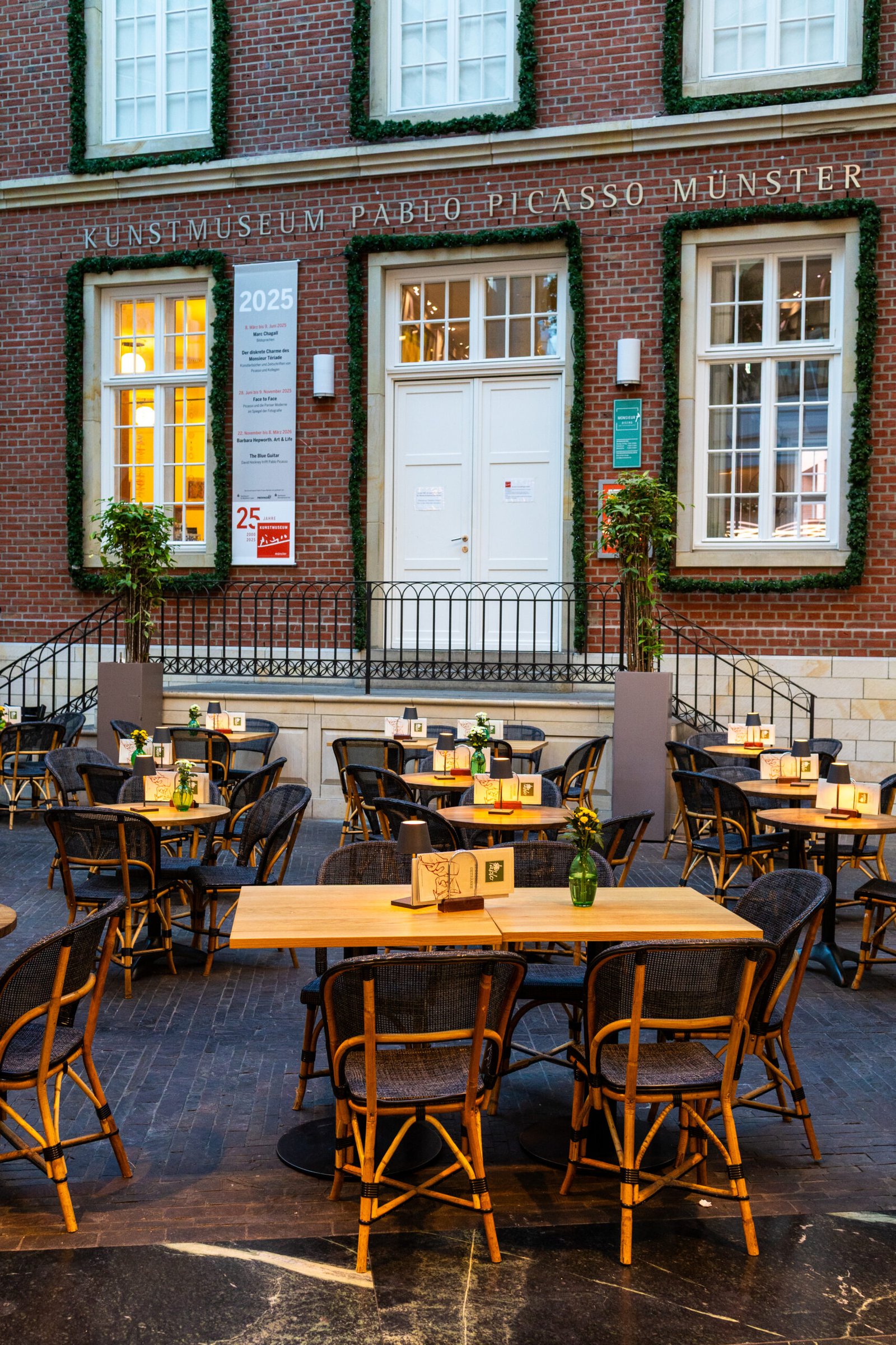 The spacious, three-story indoor courtyard offers direct access to numerous shops, the Pablo Picasso Art Museum, and the Pablo Restaurant. Opened in 2000, the Pablo Picasso Museum in Münster is Germany’s first and only Picasso museum. Housed behind historic, protected façades in the heart of the old town, it features rotating exhibitions on Pablo Picasso and his fellow artists of the Classical Modern era, including Georges Braque, Henri Matisse, and Marc Chagall. The museum’s core collection is a unique set of around 800 Picasso lithographs — one of the largest of its kind in the world.
