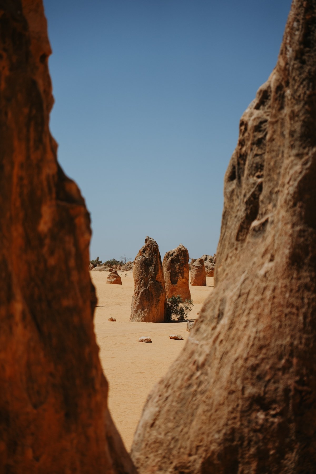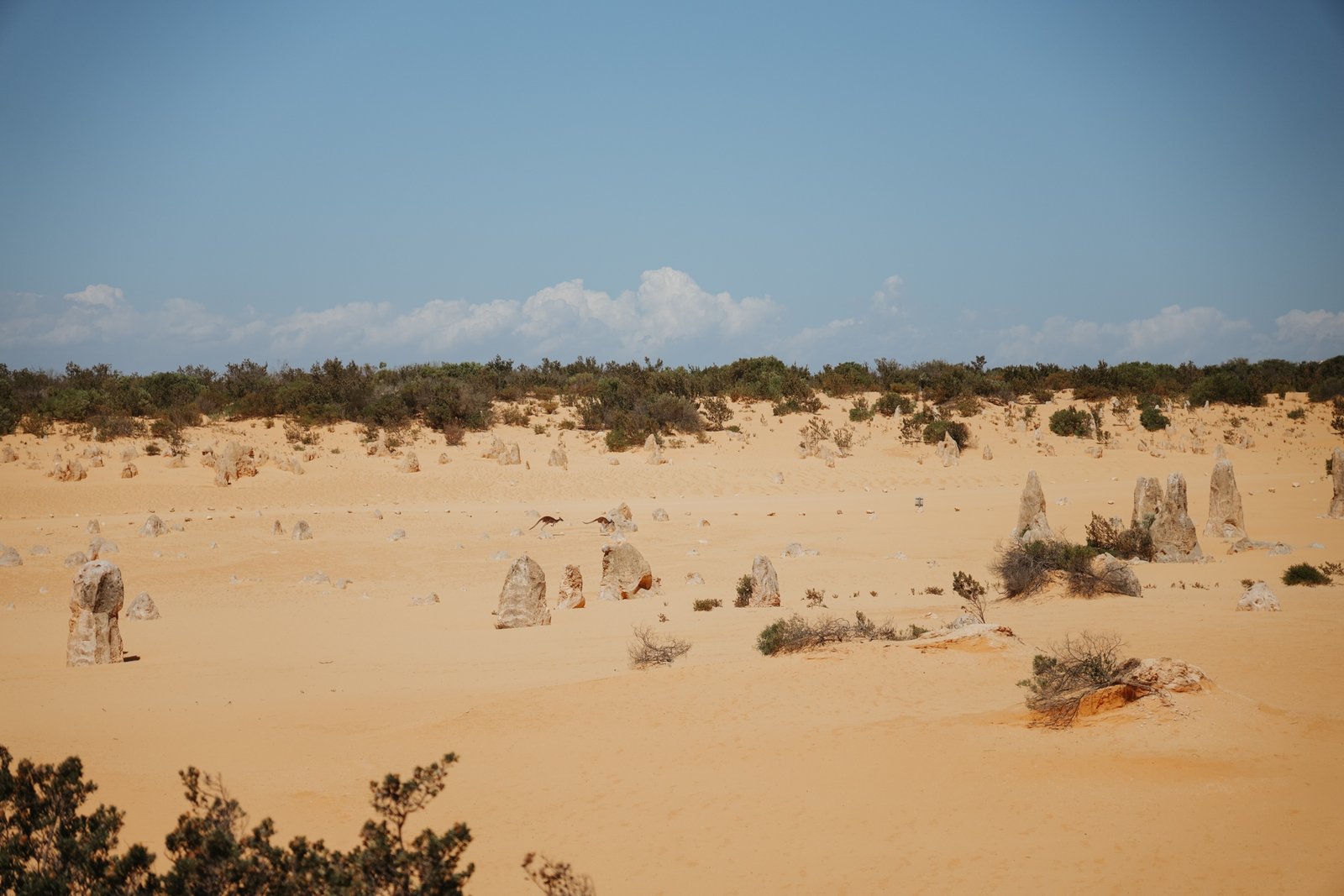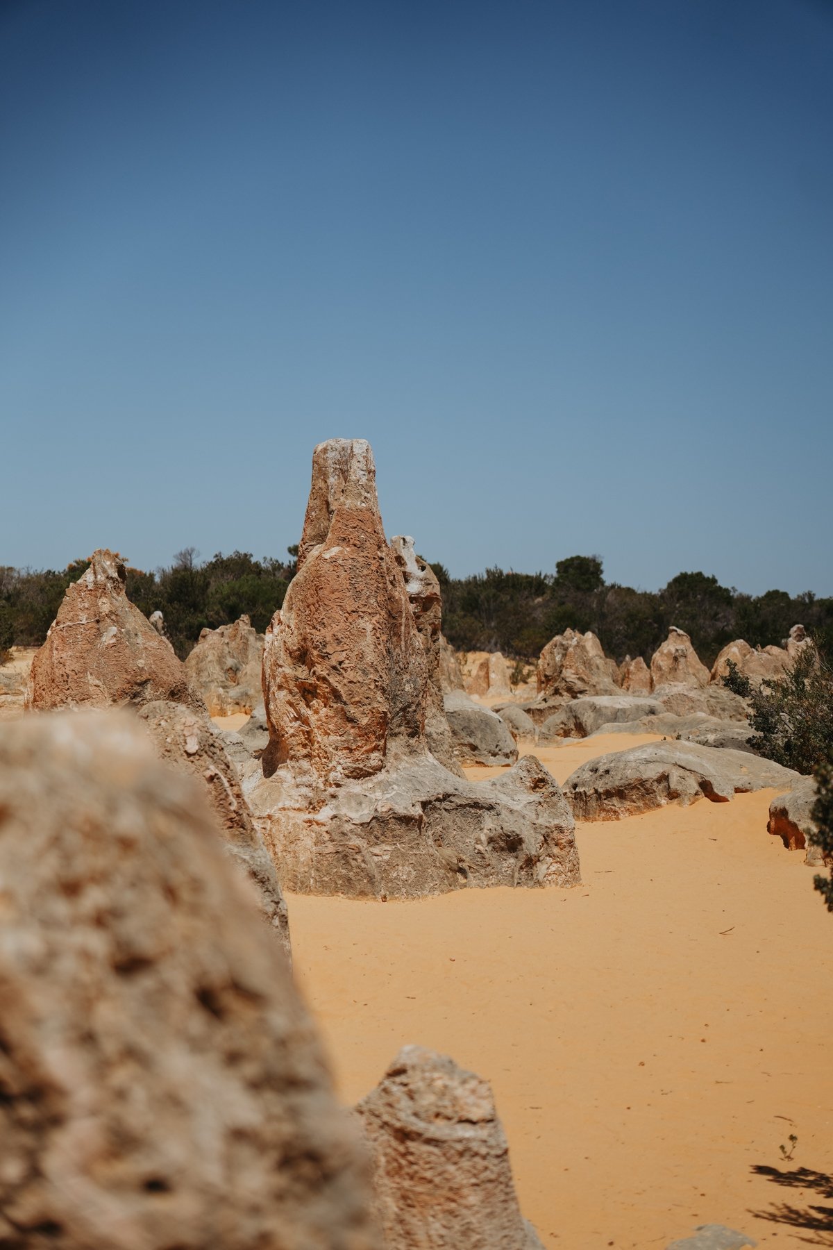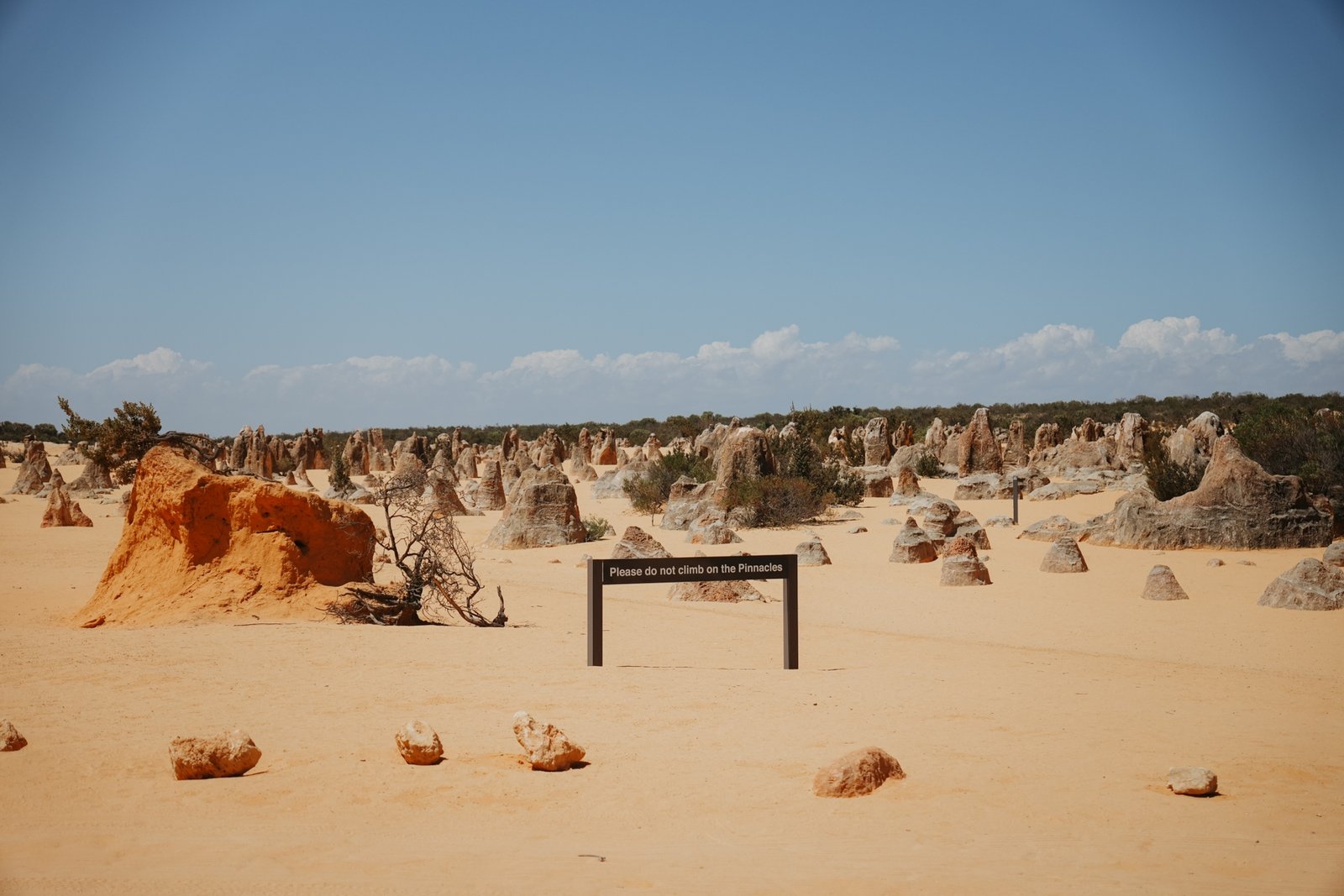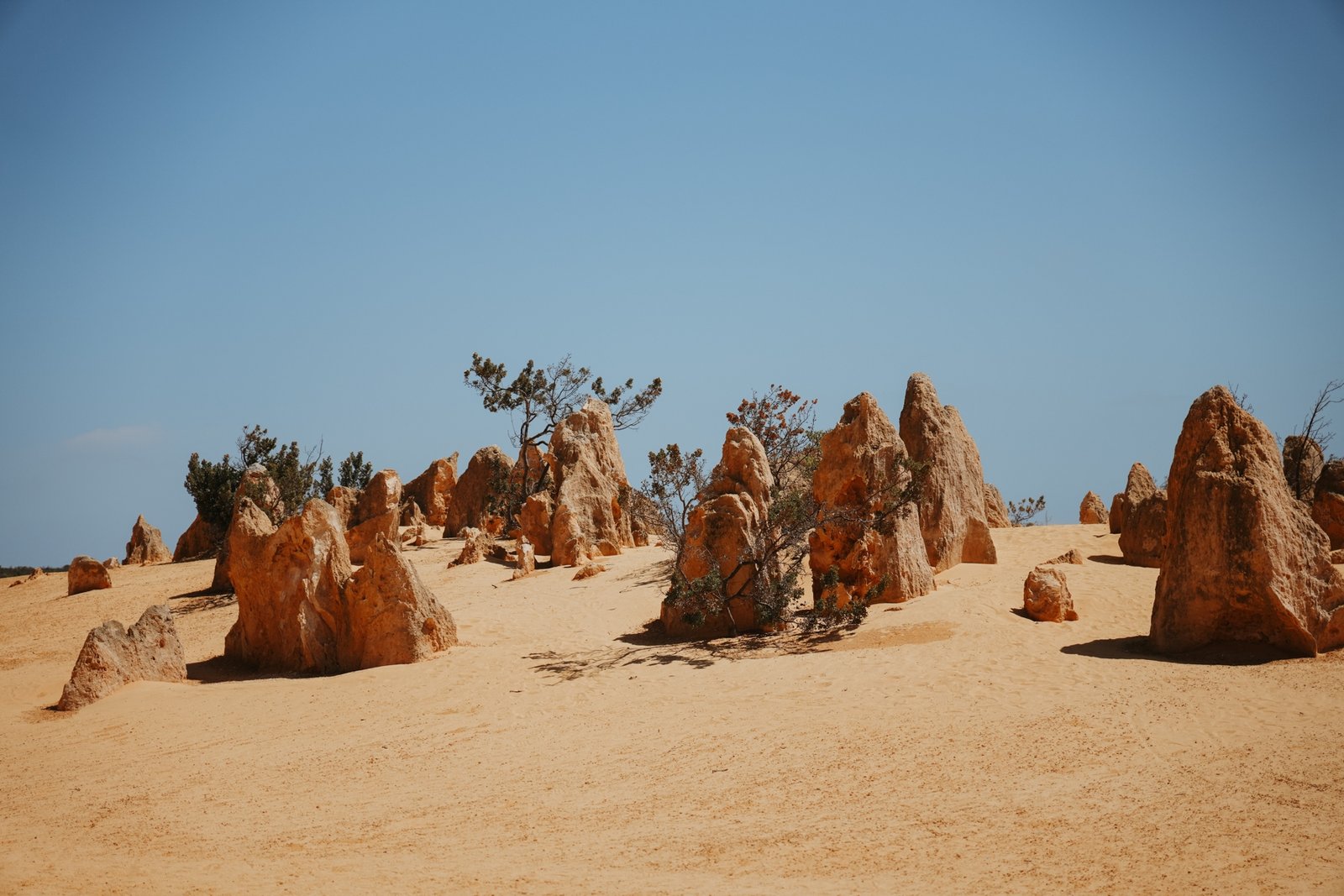 The Pinnacles, located in Nambung National Park about 200 kilometres north of Perth, are one of the most spectacular natural phenomena in Western Australia. The area is dotted with thousands of limestone columns that formed 20 to 30 thousand years ago, rising from the fine yellow sand to create an almost otherworldly scenery. Some of the formations reach up to three and a half metres high and their strange shapes and shadows change constantly throughout the day depending on the position of the sun.
